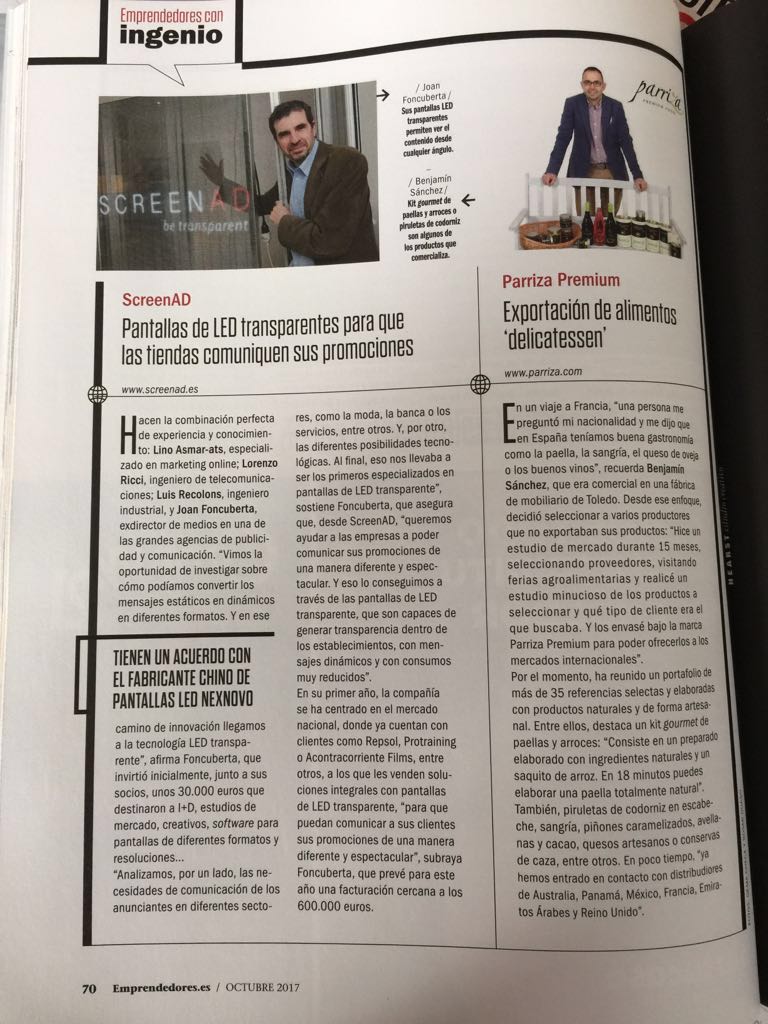 Entrevista de la revista Emprendedores a SCREENAD 10/2017